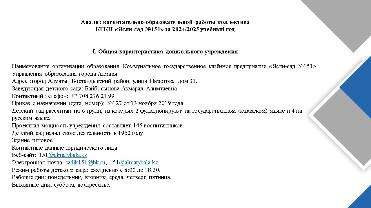 Итоги самооценки за 2024-2025 учебный год » «№151 бөбекжай-балабақшасы»